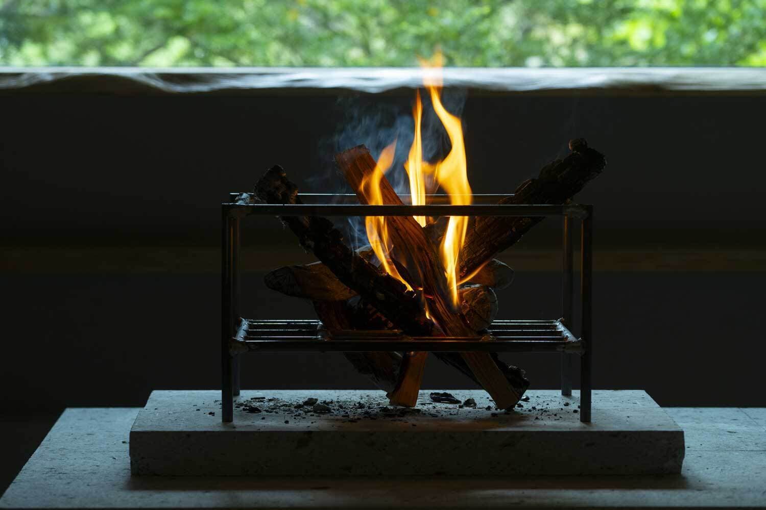 さまざまな火力を操りながら、富士北麓の食材がもつジビエ、キノコ、山菜、高原野菜、淡水魚などの深い味わいを引き出していきます。焚付けとなる樹木にもこだわり、富士山に自生する植物や樹皮を香りによって使い分け、スープのブイヨンやスパイスにも、富士山で採集される天然の葉や芽を使うなど、従来の概念にとらわれず「生きとし生けるものをすべていただく」という発想で挑む新たなガストロノミーとなります。